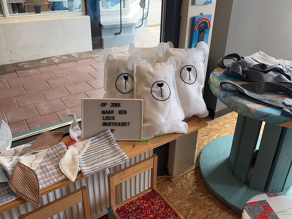 Wij maken of bewerken producten tot originele en betaalbare kado’s voor allerlei doeleinden. Dit kan bestaan uit naai, brei, plak, schilder, borduur en vele andere werkzaamheden. Wij vinden het belangrijk dat onze deelnemers zich medeverantwoordelijk voel voor het hele reilen en zeilen van de kadowinkel en worden dan ook op veel organisatorische vlakken betrokken.